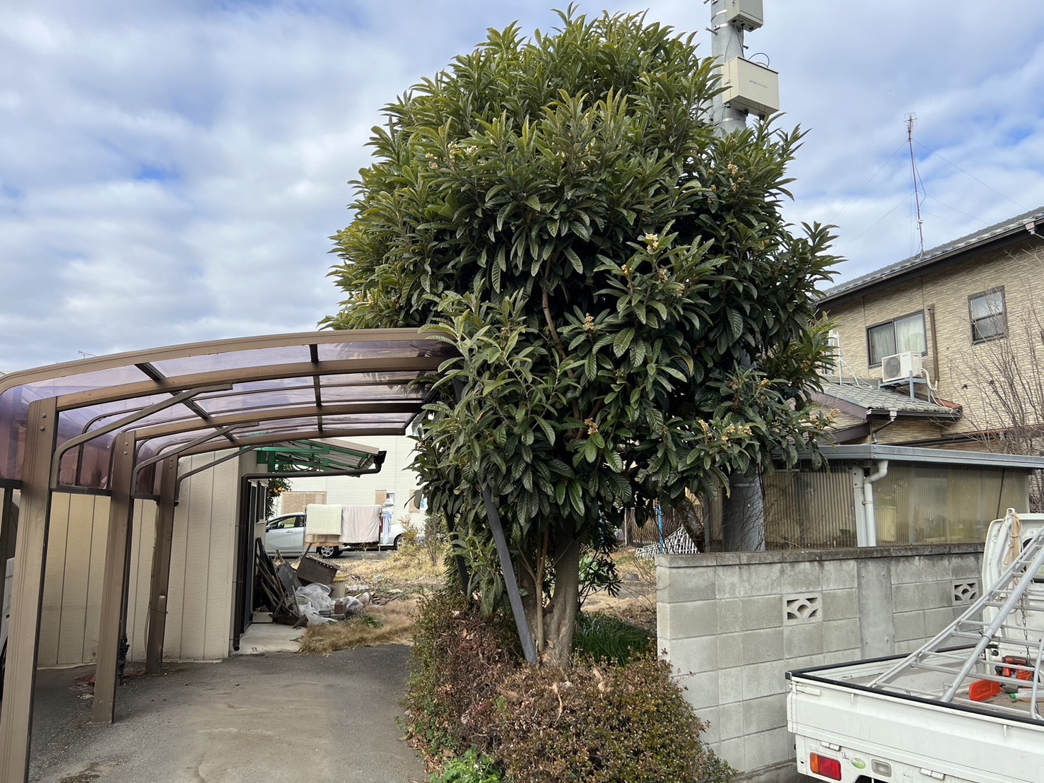 群馬県邑楽郡太田町にお住まいのK様邸にて、枇杷(ビワ)の木の伐採作業をご依頼いただき、対応させていただきました。